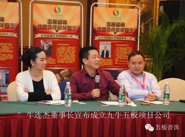 五板咨詢2014年成立至今,從無到有,從小到大,經(jīng)歷了兩年的艱苦創(chuàng)造摸索,五板如今也生根發(fā)芽如雨后春筍,9家項(xiàng)目公司遍布中國(guó)大地。華商30期班長(zhǎng)——深圳市前海微加控股有限公司牛連杰董事長(zhǎng)現(xiàn)場(chǎng)宣布和五板咨詢成立九牛五板項(xiàng)目公司,成為我們五板咨詢第10家項(xiàng)目公司!