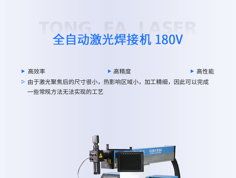 通發(fā)激光TFL-300V全自動激光焊接機,廣泛適用各種不銹鋼五金的激光焊接。可實現(xiàn)大多數(shù)0.8mm以內(nèi)料厚五金產(chǎn)品的二維平面焊接。效率高,性能穩(wěn)定,性價比高。配置精密運動控制器和工作臺高速運動實現(xiàn)焊接。