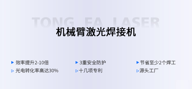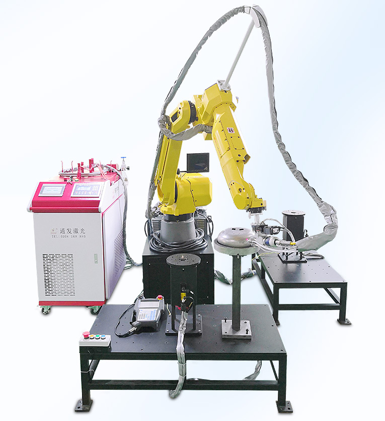 通發激光機械臂機器人激光焊接機,采用機械手六軸聯動,對三維件五金件進行3D精密焊接,非接觸式焊縫跟蹤系統,多工位協調工作,可實生產智能化,自動化,省時省力更省工,全方位降低生產成本。